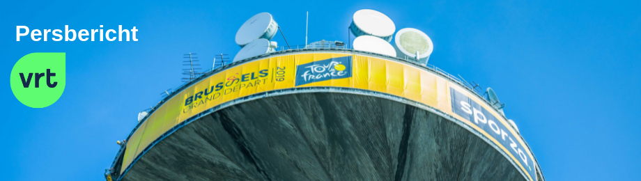 De iconische VRT-toren is sinds deze week in een geel jasje gehuld. Dat heeft alles te maken met de komst van de Ronde van Frankrijk naar Brussel. Om de vijftigste verjaardag van de eerste Tour-overwinning van Eddy Merckx te vieren start de wereldberoemde wielerronde op zaterdag 6 juli in en rond Brussel. Zondag 7 juli volgt een ploegentijdrit waardoor de wielerteams zelfs onder de VRT-toren voorbij flitsen. Om deze start, ‘le grand départ’, te vieren heeft Brussel opgeroepen om Brussel zo veel mogelijk geel te kleuren, dat is immers de kleur van de leiderstrui van de Ronde van Frankrijk.